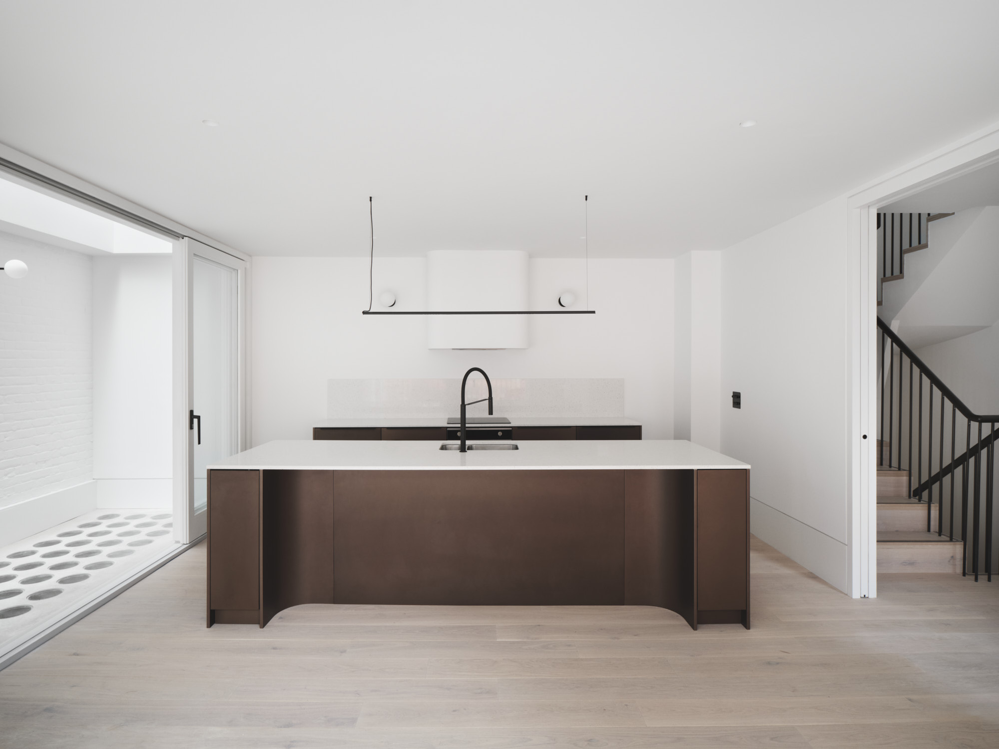 Site restrictions meant the team had to contend with a number of challenges. The building’s façade was listed and the site was extremely tight, bounded on three sides by buildings and to the front by the busy High Street Kensington. Materials storage had to be carefully planned, so as not to impede the build, and closure of the busy road to allow craning of materials into the mews had to be coordinated with the local authority, who were also installing superfast broadband cabling at the same time. A temporary cycleway that had been created in the road in front of the building also made the delivery of materials to the site more complicated.