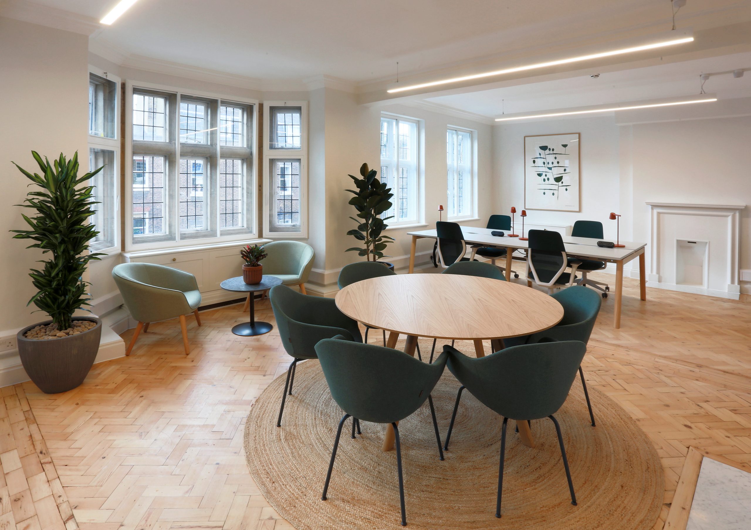 As part of the client’s new fully managed flexible office portfolio, the office space has been fully furnished and audio-visual equipment installed within meeting rooms and breakout spaces.