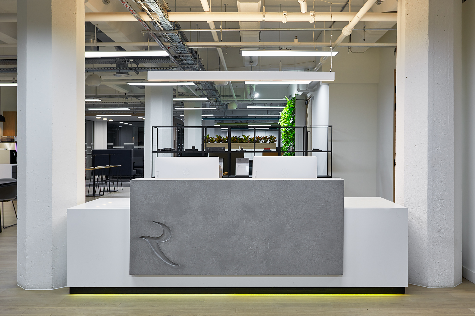The first-floor fit-out works included the design and installation of glazed partitions and joinery, design and formation of work space areas, break-out spaces and a pantry and a coffee bar. A new HVAC system, new IT cabling lighting and finishes were installed as well as a ‘green’ wall. As both phases of the project drew to a close, coordination of delivery of items such as the bespoke reception desk and furniture for the reception area had to be managed, along with the final installation of furniture in the work and breakout spaces.