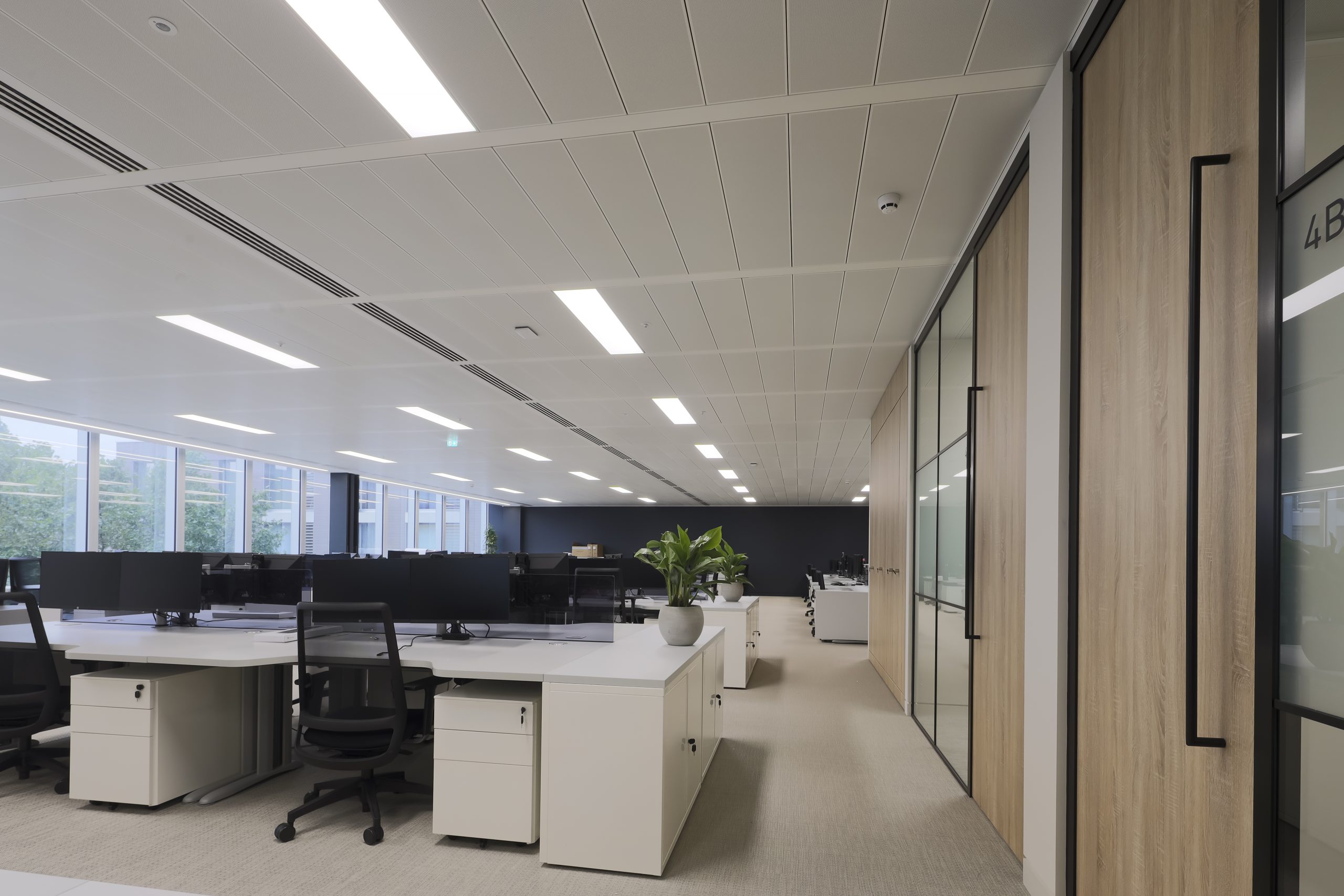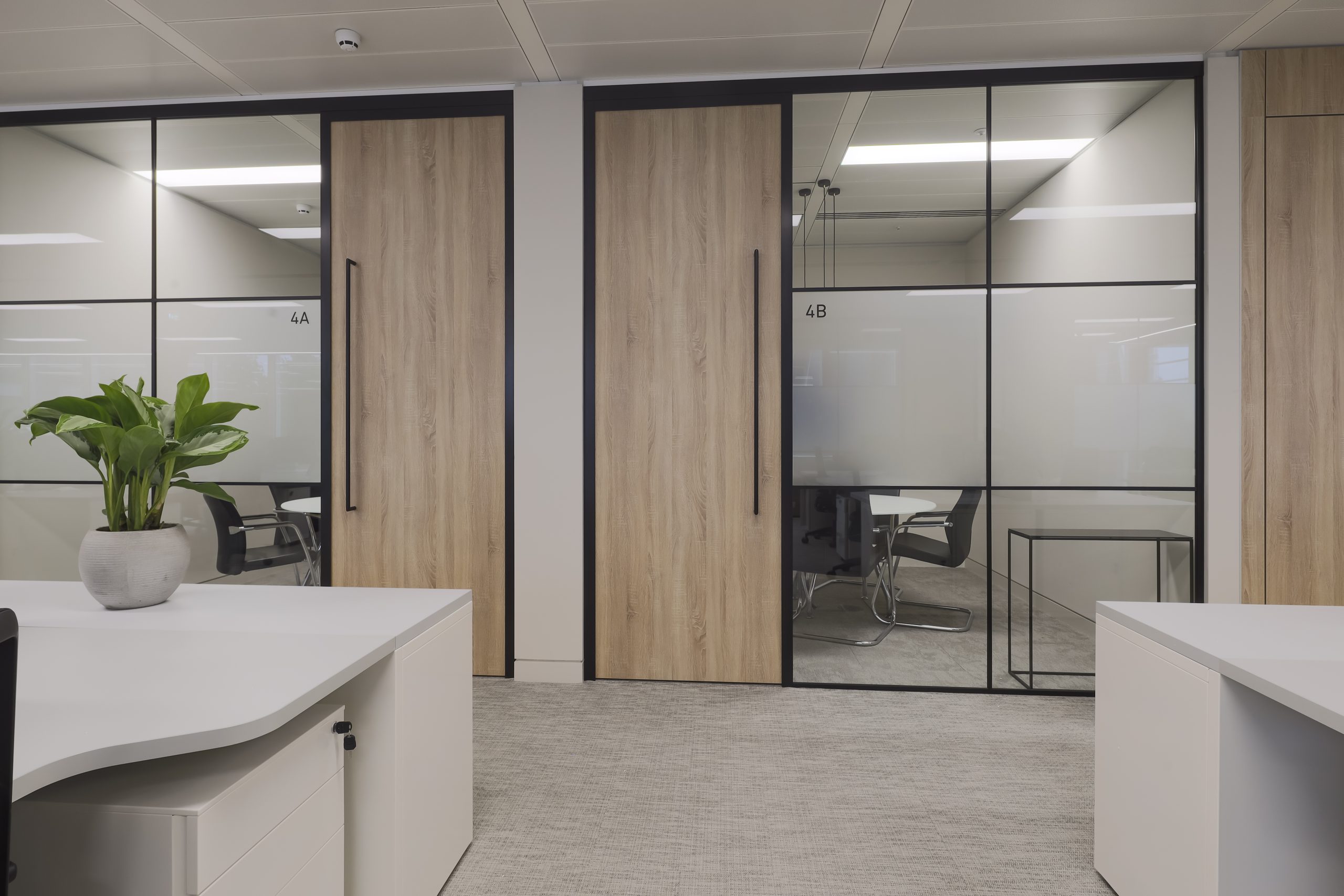 The works included design and fit-out of internal meeting rooms, study areas and a tea point on the 3rd floor and, on the 4th floor, a suite of meeting rooms, a staff breakout area and a spacious boardroom making an impressive client-facing reception area. A folding wall system on the 4th floor covers seven of the meeting rooms, which gives the client the ability to create different sized meeting rooms, or to open up the entire area into a theatre-style space for hospitality and social events overlooking the spectacular views of St Paul’s Cathedral.