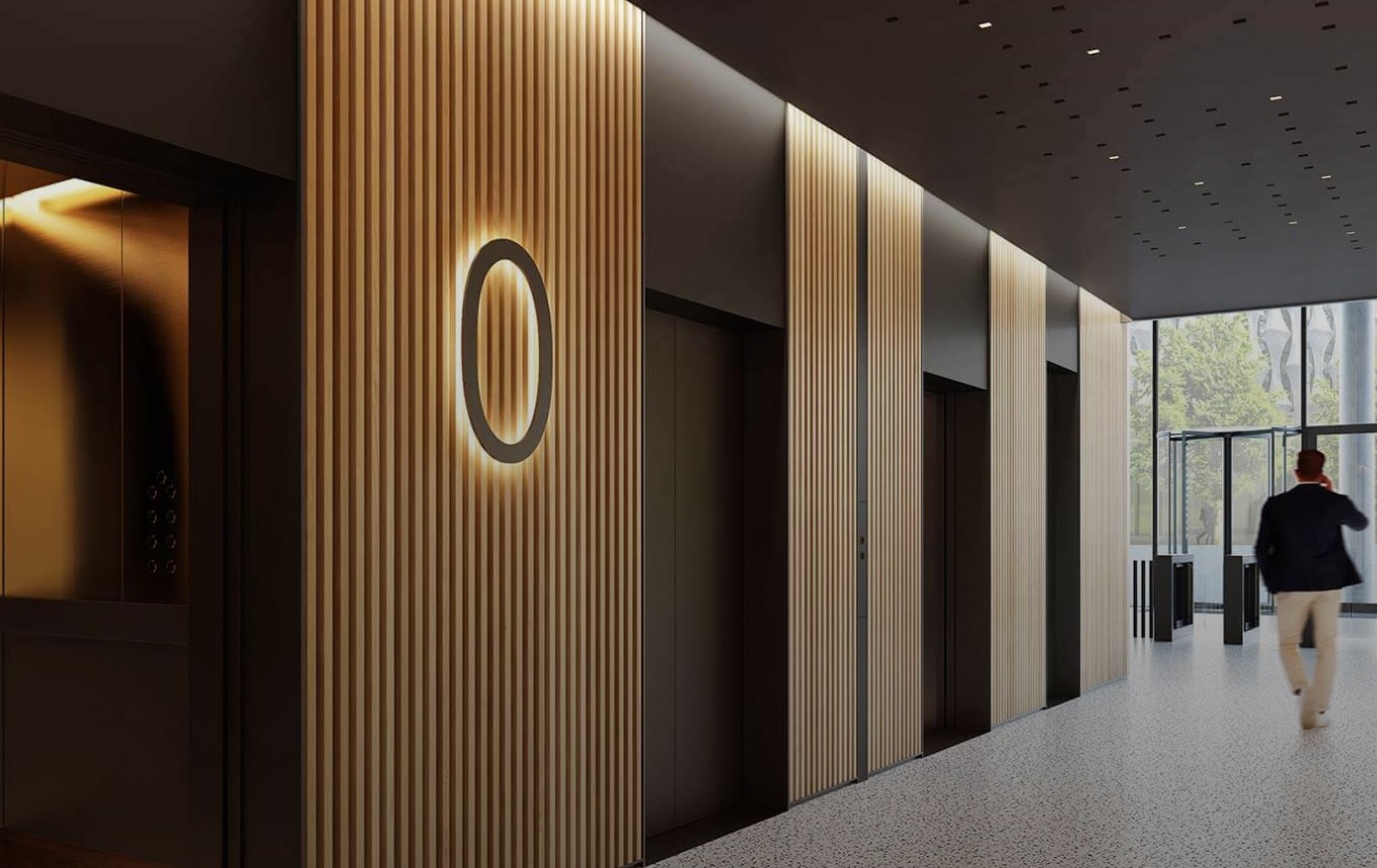 The building was designed by PLP Architects and has 156,000 sq. ft. of exceptional commercial office space over ten floors, with spectacular views over the River Thames and central London. The building overlooks the new U.S. Embassy, the linear park that runs through Nine Elms from Vauxhall to Battersea Power Station and the 2,000 new homes at Embassy Gardens.