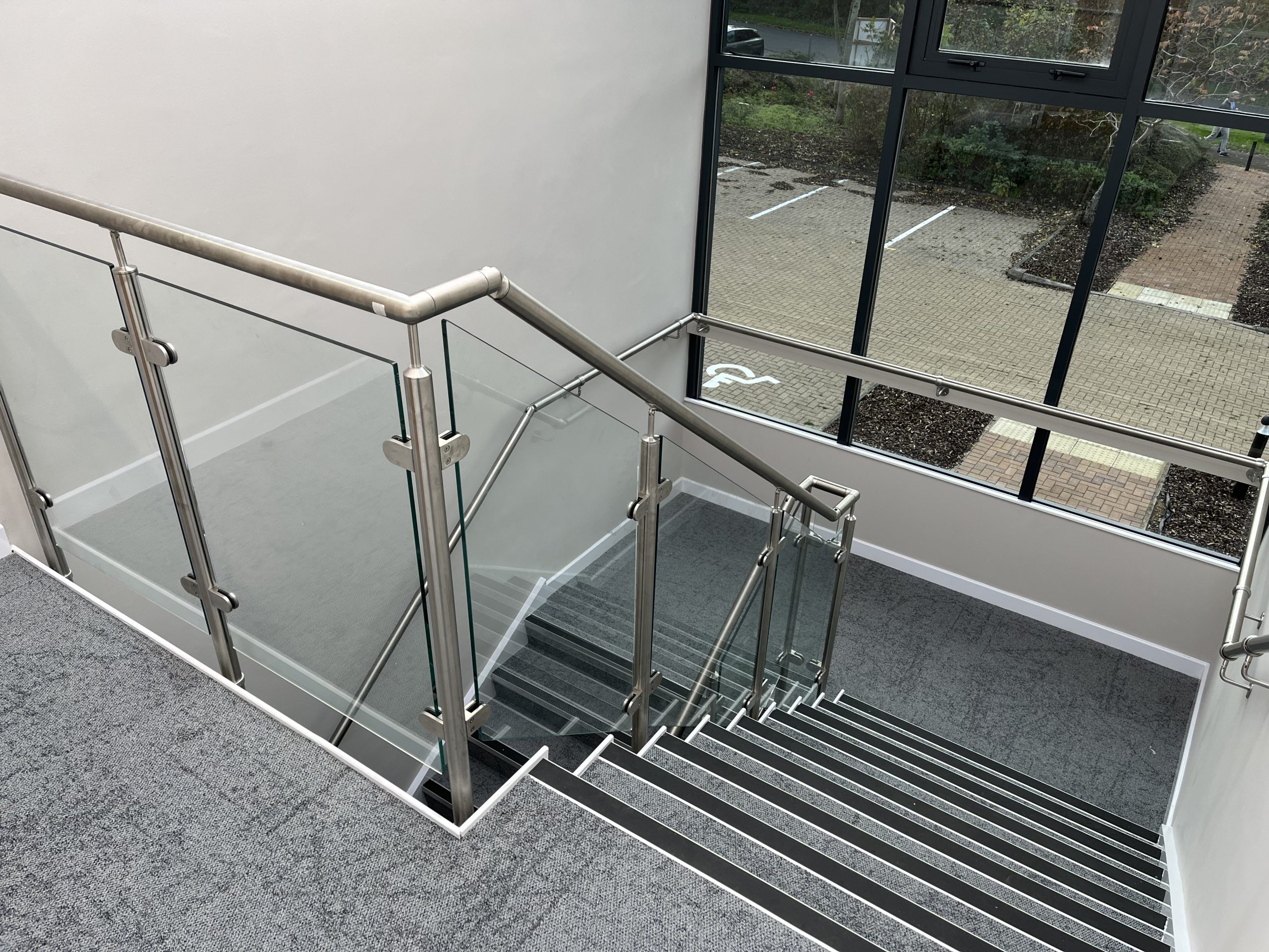 Within the office space a new ceiling and WCs were installed, carpets were replaced, new balustrading to internal staircase was added and the roller shutters and steelwork were sprayed anthracite grey to create a stylish and contemporary space for a new tenant.