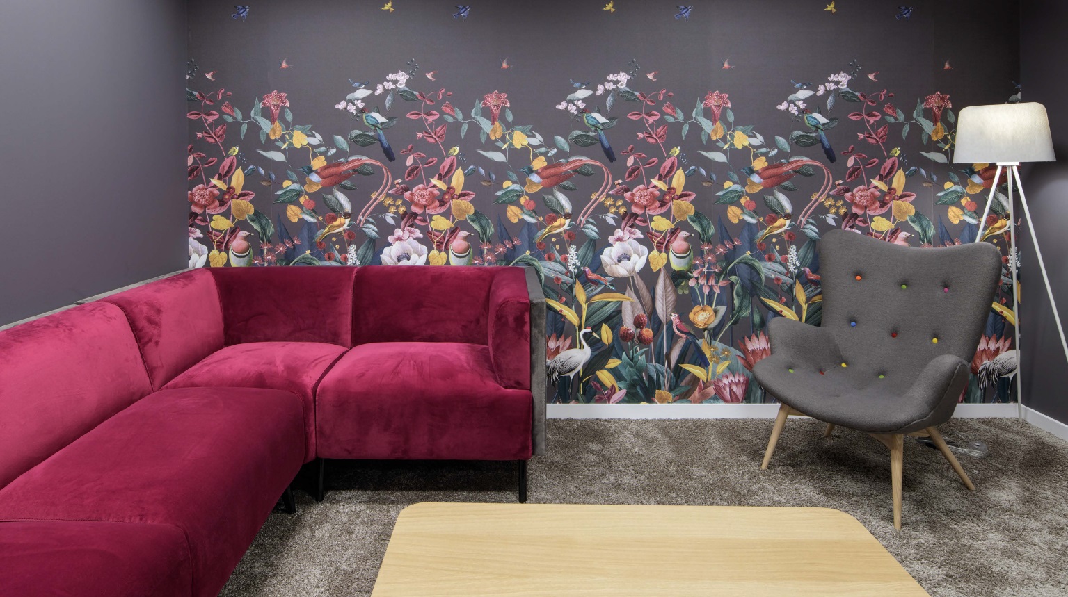 Within the office space bespoke partition systems were built and tea points were also created. Specialist ceiling acoustics were added to reduce the noise levels and to stop travel across the large open space. The entire floor was redecorated with specialist wallcoverings and new flooring and furniture was installed.