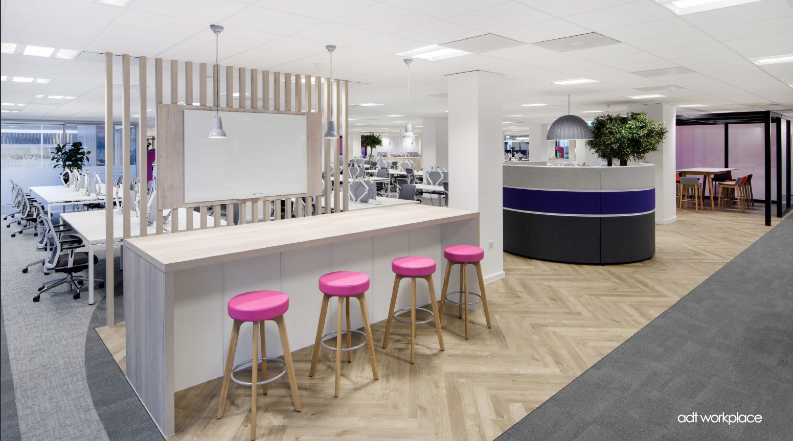 PBC was appointed to provide Project Management, Cost Consultancy and Employer’s Agent services for the CAT B refurbishment of the building’s 40,000 sq.ft. 2nd floor for a blue-chip client who wanted a more flexible space to accommodate a range of work settings for staff. The client required a workspace that created a modern environment with eight, collaborative ‘neighbourhoods’, including open meeting booths for agile working, a unique, central restaurant with a comfortable and relaxing environment and a games room.