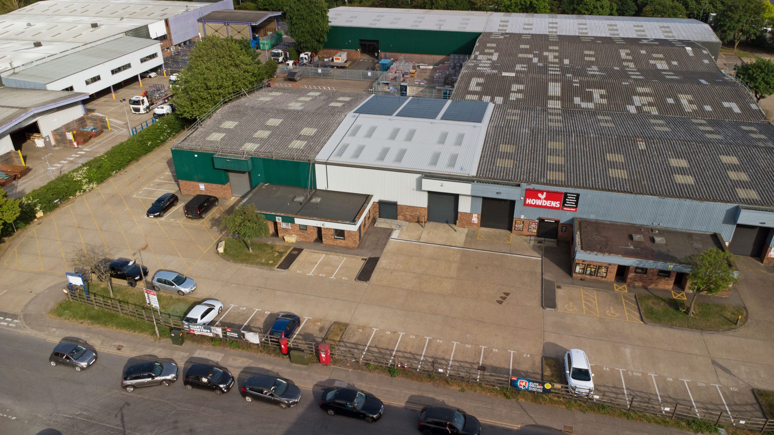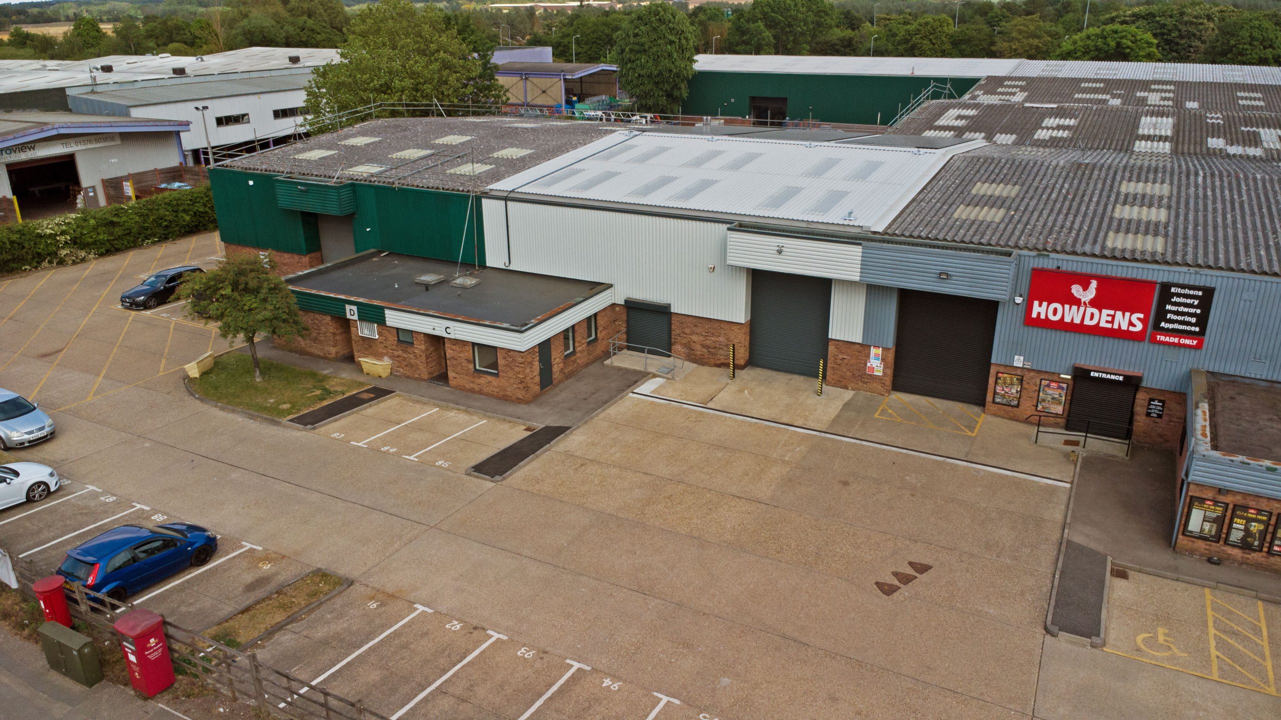 The unit benefits from a complete roof replacement of the existing office and warehouse to support a new installation of PV (photovoltaics) and replacement of rooflights.